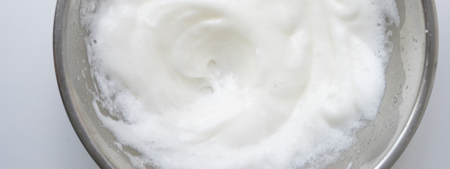 Whisk the egg whites until they reach firm peaks or a “stiff” consistency.