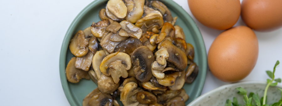 Place one tablespoon of the olive oil in a skillet over medium heat. Add the crushed garlic and sliced mushrooms and cook, stirring for 4-5 minutes or until the mushrooms are tender. Transfer the mushrooms to a bowl and set aside. Clean the skillet.