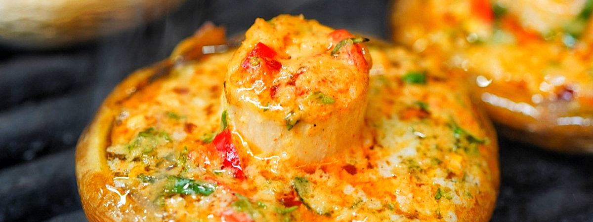 Once combined, spoon the cowboy butter into the base of the BBQ flat mushrooms.